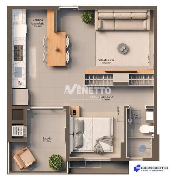Opções de planta com suíte + 1 dormitório ou 2 dormitórios